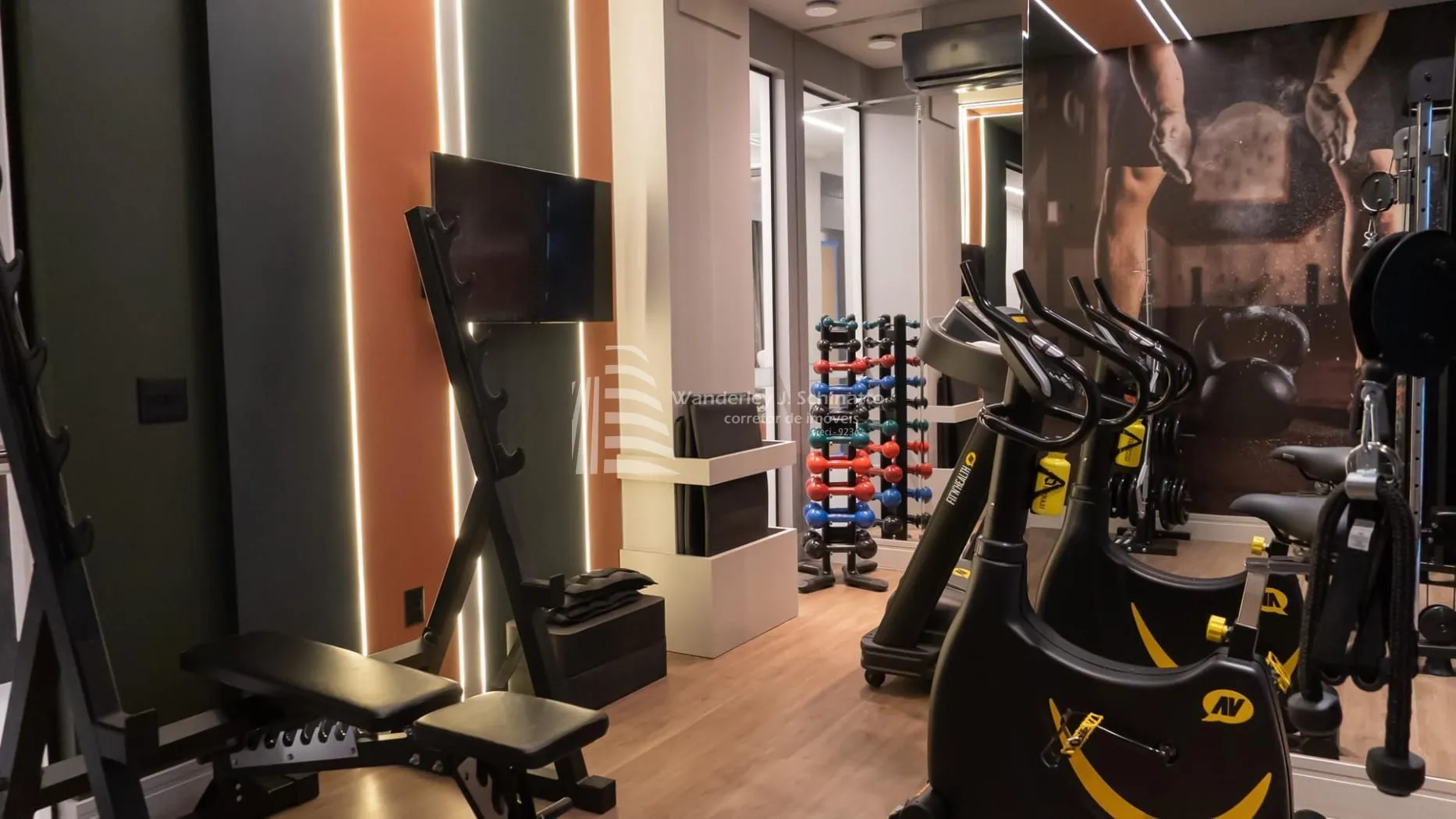 Academia totalmente equipada para manter a rotina de exercícios em dia.