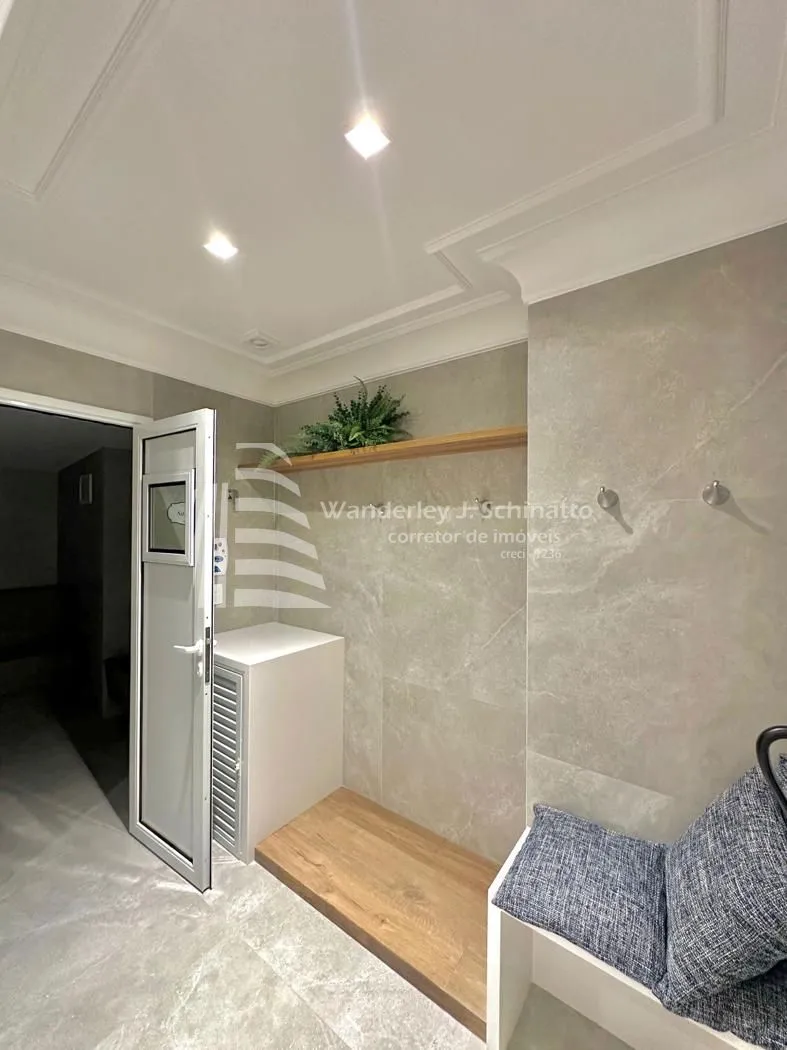 Piso porcelanato nas áreas comuns e vinílico nas areas intimas