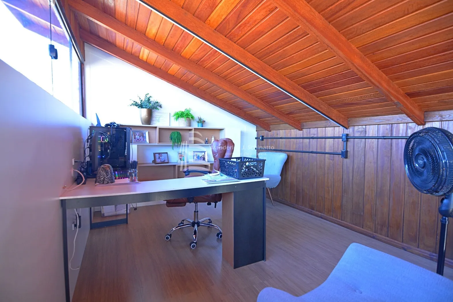 - No segundo andar, um escritório privativo aguarda seu toque pessoal, o ambiente ideal para produtividade ou para um santuário de leitura e reflexão.