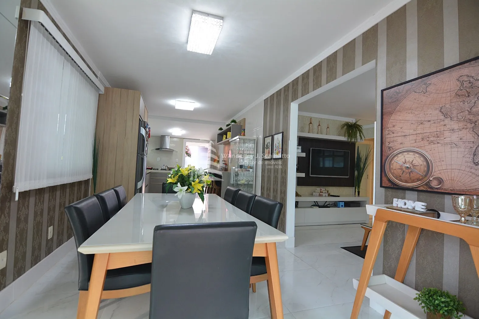 - Móveis planejados na sala de estar, cozinha e banheiros, otimizando o espaço e funcionalidade dos ambientes.