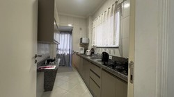 Cozinha, área de serviço, sala de estar, sala de jantar.