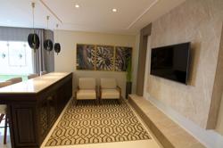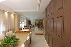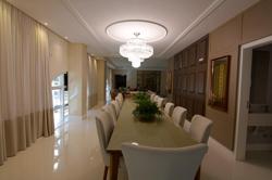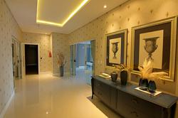 Teto com detalhes em gesso com cortineiros nos quartos